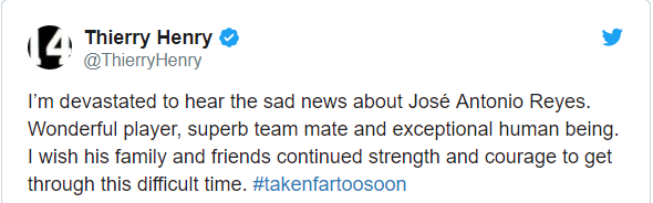 Από τη μεριά του, ο Τιερί Ανρί, ο οποίος υπήρξε συμπαίκτης του Ρέγες, δεν μπορούσε να πιστέψει τα δυσάρεστα νέα, γράφοντας στα social media τα εξής.