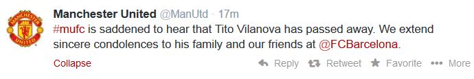 Και η Μάντσεστερ Γιουνάιτεντ αποχαιρέτησε, μέσω twitter, τον πρώην προπονητή της Μπαρτσελόνα, Τίτο Βιλανόβα.
