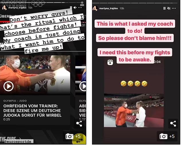 Το viral βίντεο της Γερμανίδας αθλήτριας σχολιάστηκε αρνητικά, αλλά εκείνη υπερασπίζεται τον προπονητή της. Με έναν «ιδιαίτερο» τρόπο, για πολλούς ανορθόδοξο, προσπάθησε να αφυπνίσει τη Γερμανίδα τζουντόκα, Μαρτίνα Τράιντος ο προπονητής της λίγο πριν μπει στον αγώνα για τη φάση των “32” στην κατηγορία των 63 κιλών των Ολυμπιακών Αγώνων του Τόκιο. Ο προπονητής την ταρακούνησε αρχικά και εν συνεχεία τη χαστούκισε πριν μπει στη μάχη με την Ζόφι Οζμπάς από την Ουγγαρία.