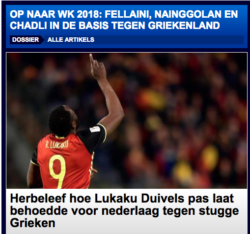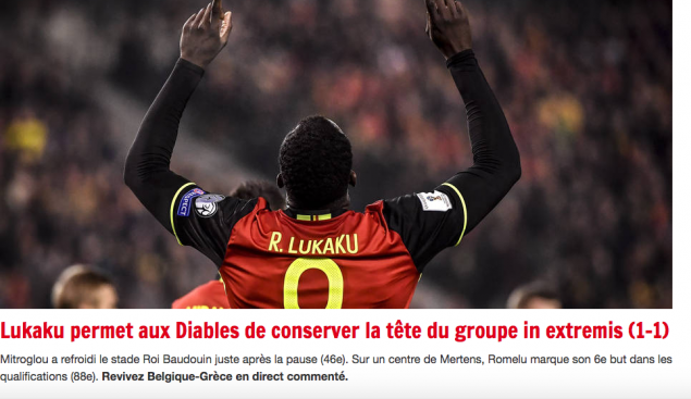 Αφιερωμένοι στον Ρομελού Λουκακού είναι όλοι τίτλοι των βελγικών Μ.Μ.Ε. αμέσως μετά το τέλος της αναμέτρησης του Βελγίου με την Εθνική μας ομάδα, η οποία κρατούσε μέχρι το 89′ ένα σπουδαίο “διπλό” στις Βρυξέλλες.