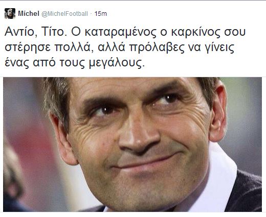 «Αντίο, Τίτο. Ο καταραμένος ο καρκίνος σου στέρησε πολλά, αλλά πρόλαβες να γίνεις ένας από τους μεγάλους», έγραψε ο Μίτσελ.