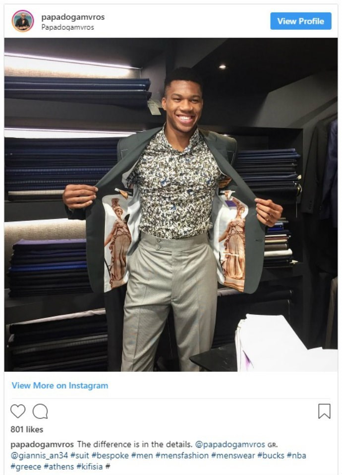 Ο Γιάννης Αντετοκούνμπο για την βράβευσή του ως πολυτιμότερος παίκτης του NBA, επέλεξε να βάλει ένα διαφορετικό σακάκι. Αν και στην πρώτη ματιά φαίνεται φυσιολογικό, στη φόδρα κρύβεται το μυστικό της αγάπης του προς την Ελλάδα, καθώς φαίνεται ο Παρθενώνας.