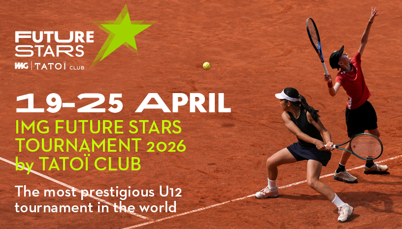 Το TATOÏ Club και η IMG Tennis διοργανώνουν για 5η συνεχόμενη χρονιά το IMG Future Stars Tournament, από τις 19 έως τις 25 Απριλίου 2026 στο TATOÏ Club. Πρόκειται για μία από τις πλέον αναγνωρισμένες διεθνείς διοργανώσεις τένις στις μικρές ηλικιακές κατηγορίες, η οποία φιλοξενεί την ελίτ του παγκόσμιου τένις στην κατηγορία κάτω των 12 ετών (U12). Φέτος, 48 αθλητές – 24 αγόρια και 24 κορίτσια – από 25 χώρες, θα αγωνιστούν στα γήπεδα του TATOÏ Club για μια εβδομάδα υψηλού ανταγωνισμού, προσφέροντας στο κοινό μια πρώτη ματιά στους αυριανούς πρωταθλητές των Grand Slams.