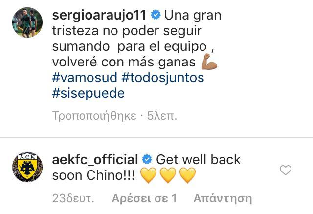 Μάλιστα, η ΑΕΚ απάντησε στον Αργεντινό γράφοντας «Καλή επιστροφή Τσίνο».