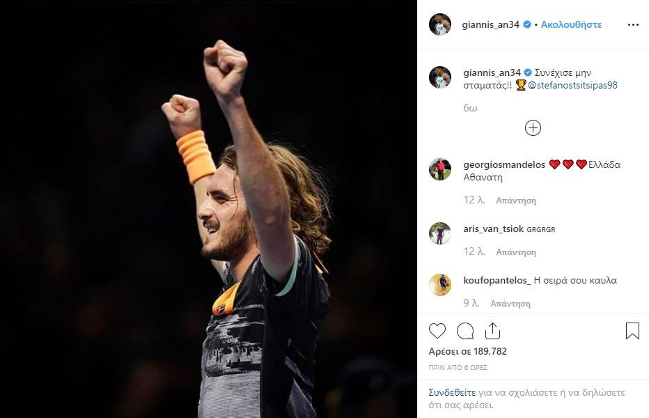 Το δικό του μήνυμα έστειλε ο Γιάννης Αντετοκούνμπο στον Στέφανο Τσιτσιπά για τον θρίαμβο του τελευταίου στο Λονδίνο.