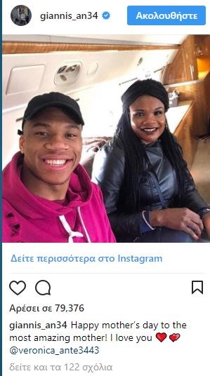 Ο Γιάννης Αντετοκούνμπο ευχήθηκε στη μητέρα του, Βερόνικα, για τη γιορτή της μητέρας την Κυριακή (13/5).
