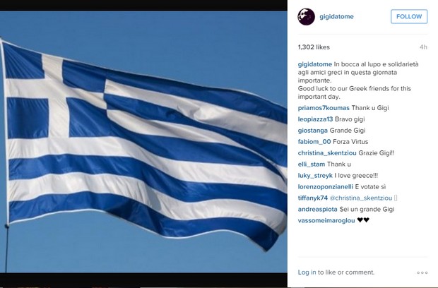 Δεν είναι λίγοι οι ξένοι αθλητές που σχολιάζουν στα μέσα κοινωνικής δικτύωσης την κατάσταση που επικρατεί στην Ελλάδα και εκφράζουν τη στήριξή τους στη χώρα μας. Ένας από αυτούς είναι και ο Λουίτζι Ντατόμε, ο οποίος έστειλε το δικό του μήνυμα στο instagram με αφορμή και το σημερινό δημοψήφισμα.