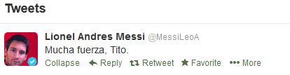 «Πολλή δύναμη (κουράγιο) Τίτο», έγραψε ο Αργεντινός σούπερ σταρ της Μπαρτσελόνα.