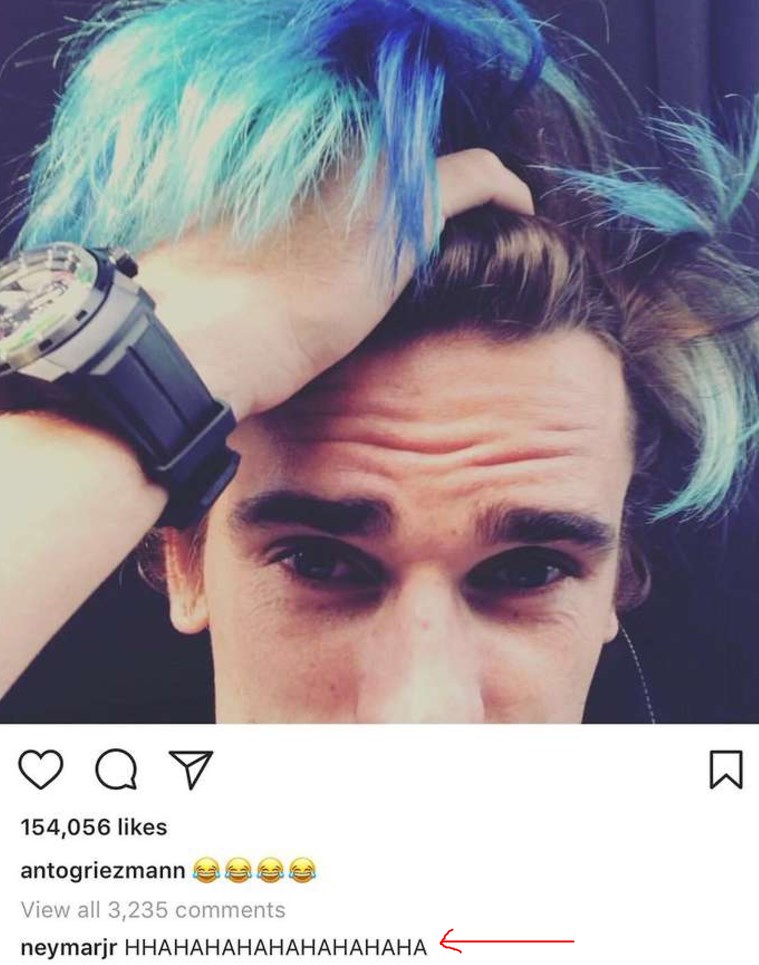 Εξίσου ευδιάθετα σχολίασε τη νέα κόμμωση του Γκριεζμάν ο Νεϊμάρ, ο οποίος δεν μπόρεσε να συγκρατήσει τα γέλια του.