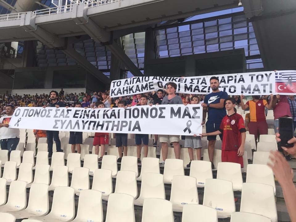 Δύο τεράστια πανό σήκωσαν κάποιοι φίλοι της Γαλατασαράι στις κερκίδες του ΟΑΚΑ στο φιλικό παιχνίδι κόντρα στην ΑΕΚ.