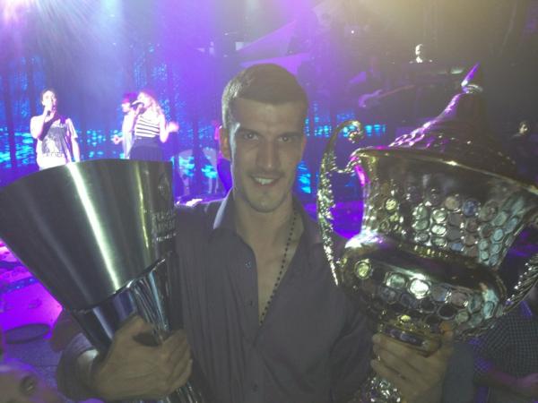 Πρόκειται, όπως άλλωστε μπορείτε να διακρίνετε, για μια τούρτα στην οποία απεικονίζεται η απονομή του κυπέλλου της Ευρωλίγκας, το οποίο κατέκτησε πριν από 15 ημέρες ο Ολυμπιακός.Ο Σέρβος άσος των “ερυθρολεύκων” ανήρτησε μία ακόμη φωτογραφία στην οποία φαίνεται ο ίδιος να κρατά περιχαρής, τα δύο τρόπαια (Ευρωλίγκα και Πρωτάθλημα) που κατέκτησαν φέτος οι Πειραιώτες.