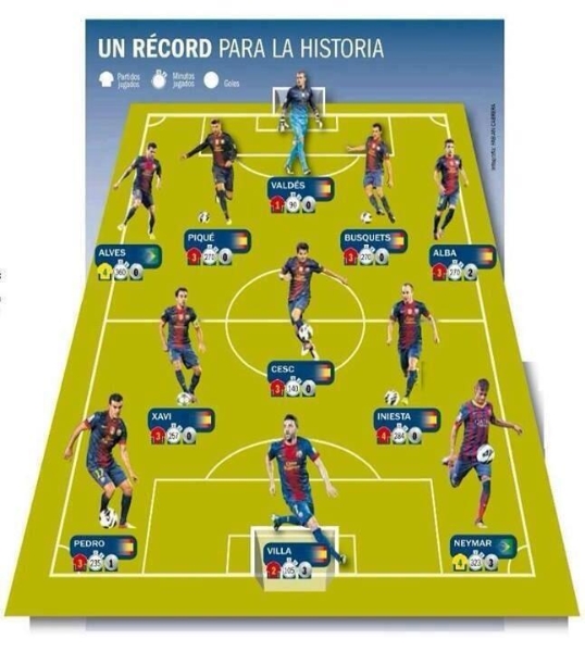 Οι Καταλανοί έχουν μία ενδεκάδα δικούς τους παίκτες, με ποδοσφαιριστή για κάθε θέση! Οι περισσότεροι φυσικά είναι από την Ισπανία, ωστόσο υπάρχουν και οι Νεϊμάρ και Ντάνι Άλβες από την Βραζιλία.