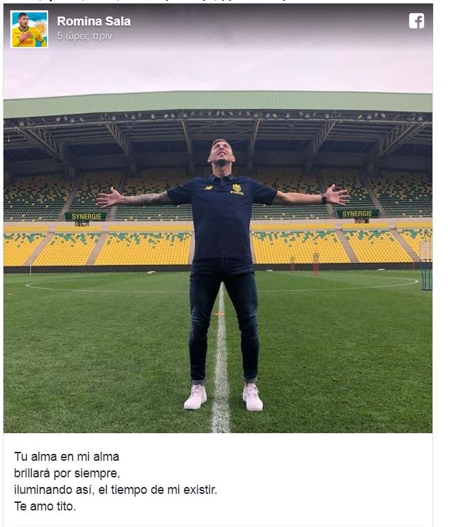 Θλίψη γέμισε την οικογένειά του και τους φίλους του η είδηση της ταυτοποίησης της σορού του Εμιλιάνο Σάλα, που ανασύρθηκε από το κουφάρι του μικρού αεροσκάφους, το οποίο χάθηκε από τα ραντάρ πάνω από τη Μάγχη στις 21 Ιανουαρίου.Η αδερφή του Ρομίνα τον αποχαιρέτισε με σπαρακτικά μηνύματα στο Facebook. Το πρώτο ήταν μια φωτογραφία του αδερφού της με τη μητέρα τους, χωρίς να γράψει κάτι.