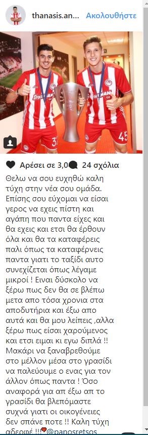 «Θέλω να σου ευχηθώ καλή τύχη στην νέα σου ομάδα.