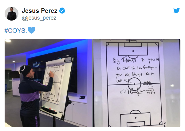 Ο βοηθός του Αργεντινού τεχνικού, Χεσούς Πέρεθ, αποκάλυψε το μήνυμα που έγραψε ο Ποτσετίνο σε έναν πίνακα ως αποχαιρετισμό.