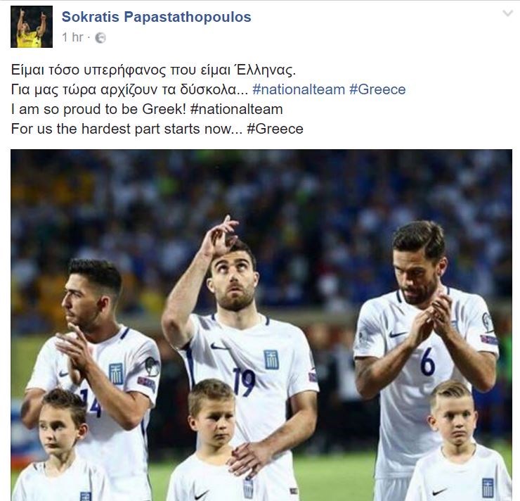 Ο διεθνής ποδοσφαιριστής έγραψε χαρακτηριστικά : «Είμαι τόσο υπερήφανος που είμαι Έλληνας.