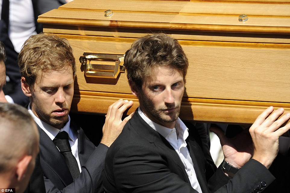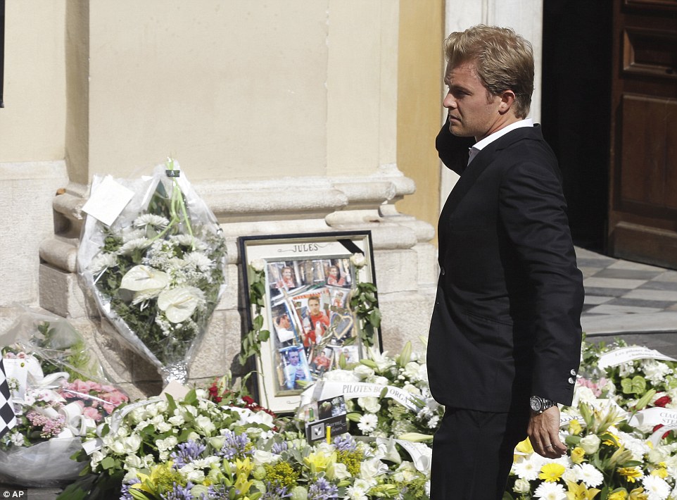 Ο Λιούις Χάμιλτον, ο Νίκο Ρόσμπεργκ, ο Τζένσον Μπάτον, ο Ρομάν Γκροσεάν και ο Φελίπε Μάσα ήταν λίγοι από τους παρευρισκομένους που έδωσαν το παρών στο τελευταίο αντίο του αδικοχαμένου οδηγού της Marussia.