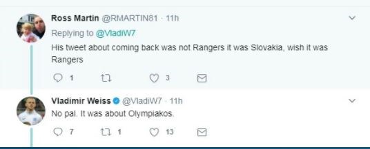Άναψε “φωτιές” ο Βλάντιμιρ Βάις με σχόλιό του ως απάντηση σε χρήστη του Τwitter πως όταν έγραφε στις 19 Μαΐου για επιστροφή στην Ευρώπη ήταν για τον Ολυμπιακό.
