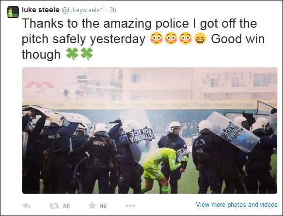 Με ένα καυστικό tweet και μια φωτογραφία από τα επεισόδια που σημάδεψαν το παιχνίδι ανάμεσα στον Παναθηναϊκό και τον ΟΦΗ σχολίασε ο Λουκ Στιλ τα όσα έζησε στο γήπεδο του Ηρακλείου.