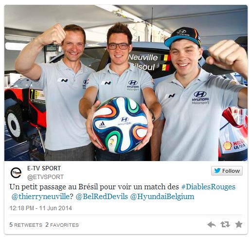 Ο Τιερί Νεβίλ θα παρευρεθεί στα γήπεδα της Βραζιλίας προκειμένου να στηρίξει από κοντά την προσπάθεια του Βελγίου. Άλλωστε η Hyundai είναι μεγάλος χορηγός της κορυφαίας διοργάνωσης και έτσι δεν δυσκολεύτηκε και πολύ για να… βρει κάποιο εισιτήριο.