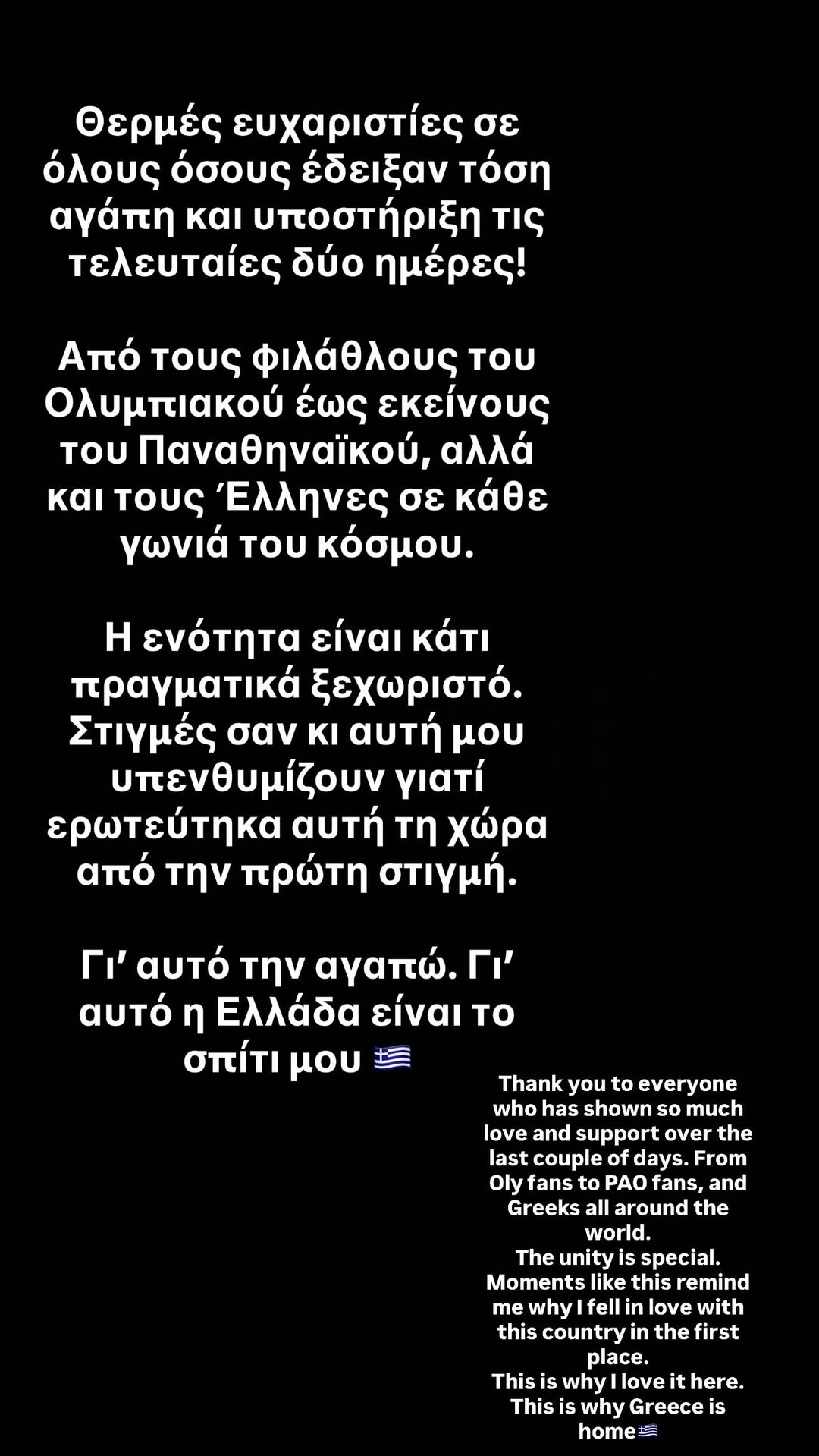 «Θερμές ευχαριστίες σε όλους όσους έδειξαν τόση αγάπη και υποστήριξη τις τελευταίες δύο ημέρες!