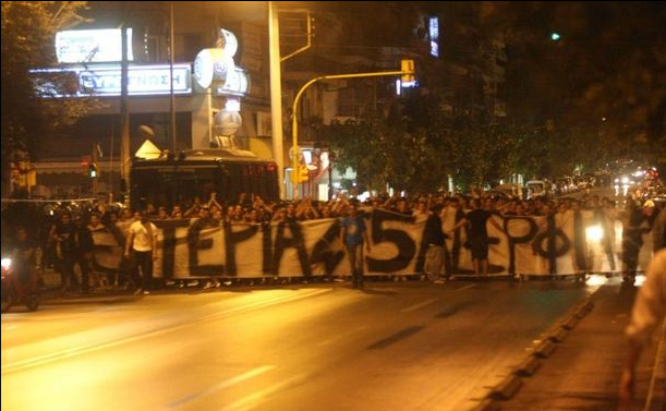 Ένταση επικρατεί στη Λ. Αλεξάνδρας έξω από τα γραφεία του συνδέσμου φιλάθλων του Παναθηναϊκού, όπου βρίσκονται συγκεντρωμένα πάνω από 500 άτομα, διαμαρτυρόμενα για την αστυνομική βία. Στο σημείο βρίσκονται και αστυνομικές δυνάμεις.Σύμφωνα με τις μέχρι στιγμής πληροφορίες, αφορμή για τη διαμαρτυρία ήταν ο έλεγχος των αστυνομικών στους φιλάθλους στο ματς της Κυριακής στο ΟΑΚΑ που είχε ως αποτέλεσμα τη σύλληψη τεσσάρων ατόμων, στην κατοχή των οποίων βρέθηκαν φωτοβολίδες.