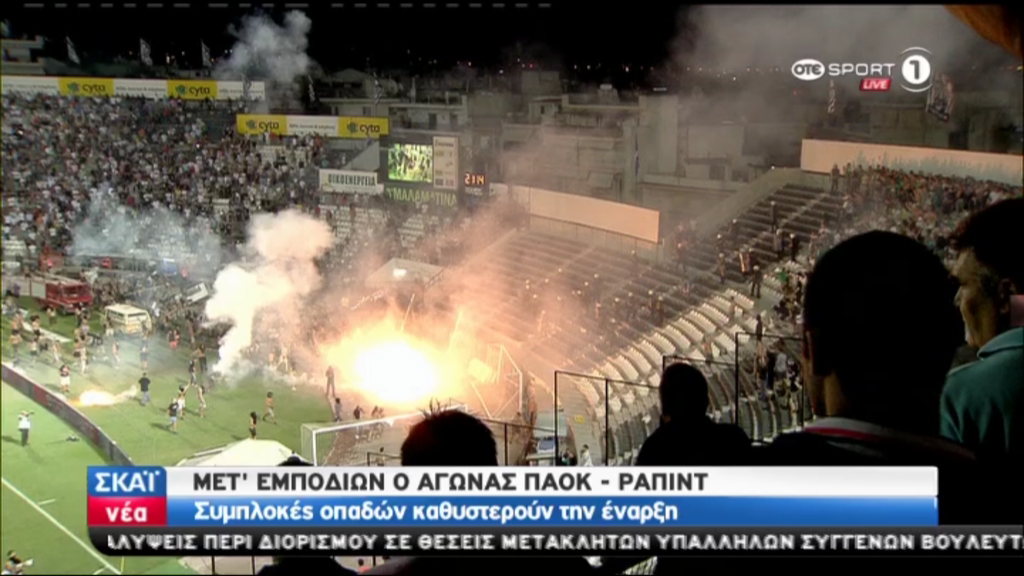 Σοβαρά επεισόδια σημειώθηκαν στην Τούμπα πριν την έναρξη του αγώνα ανάμεσα στον ΠΑΟΚ και την Ραπίντ, μεταξύ των οπαδών των δύο ομάδων που μπήκαν στον αγωνιστικό χώρο. Αν δεν επανέλθει η ηρεμία, το ματς δεν πρόκειται να ξεκινήσει..