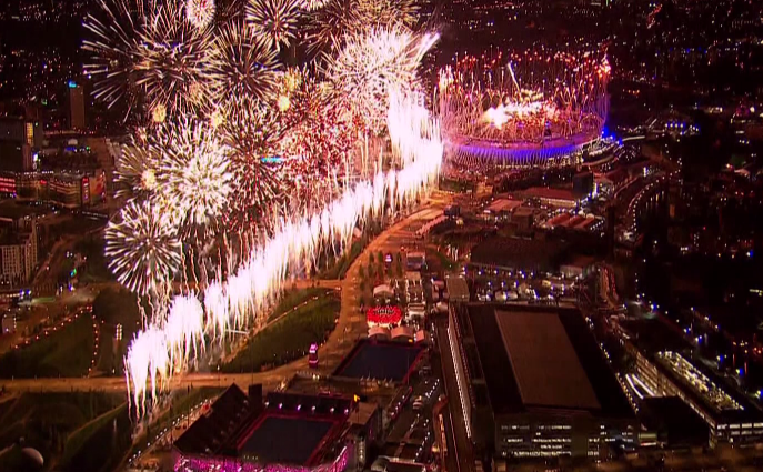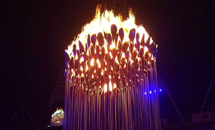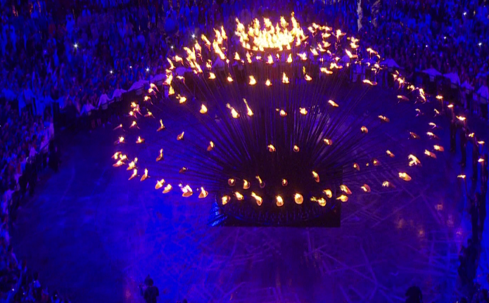 Η Ολυμπιακή φλόγα φωτίζει τον ουρανό του Λονδίνου. Ταξίδεψε σε όλα τα μήκη και πλάτη του πλανήτη, διανύοντας περίπου 20.000 χιλιόμετρα. Οι 30οι Ολυμπιακοί Αγώνες αρχίζουν!