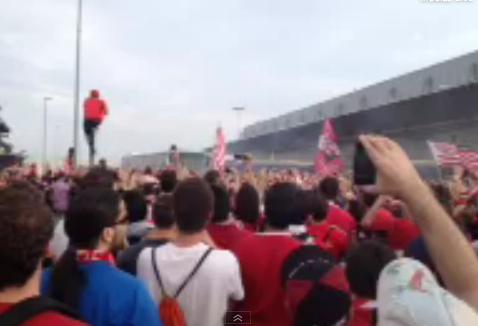Τώρα πέρασε από την Πύλη 7 του αεροδρομίου το πούλμαν που μεταφέρει την αποστολή του Ολυμπιακού. Οι φίλαθλοι τους υποδέχονται με συνθήματα.