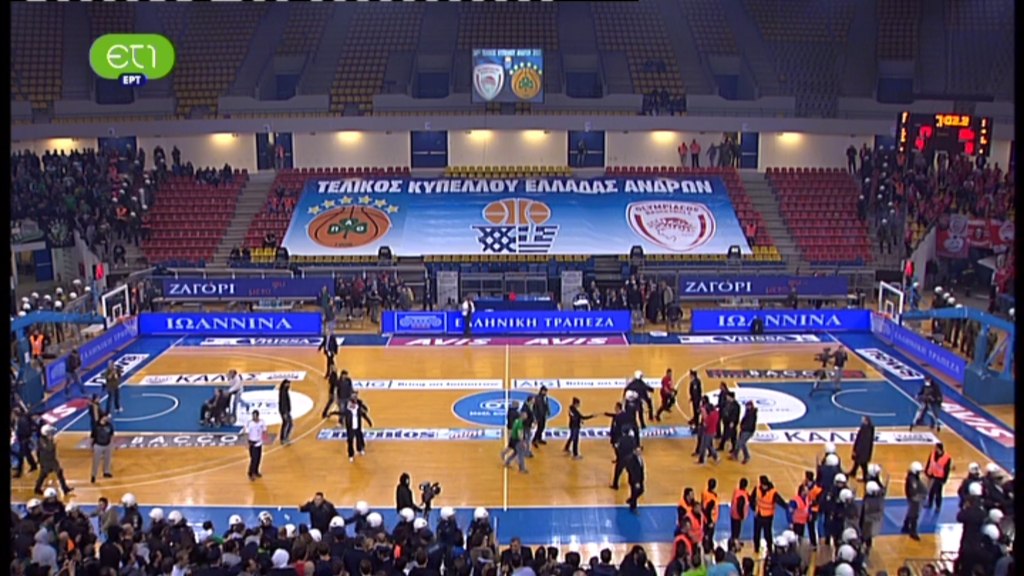 Μονομαχίες ανάμεσα σε οπαδούς και άνδρες της Αστυνομίας είναι αυτή την ώρα σε εξέλιξη στο κλειστό του Ελληνικού όπου διεξάγεται ο τελικός Κυπέλλου.