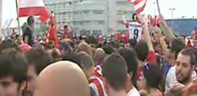 «Θρύλος» αναφωνούν οι φίλαθλοι που έχουν συγκεντρωθεί στο Ελευθέριος Βενιζέλος, ενώ περιμένουν την αποστολή να περάσει την Πύλη του αεροδρομίου.