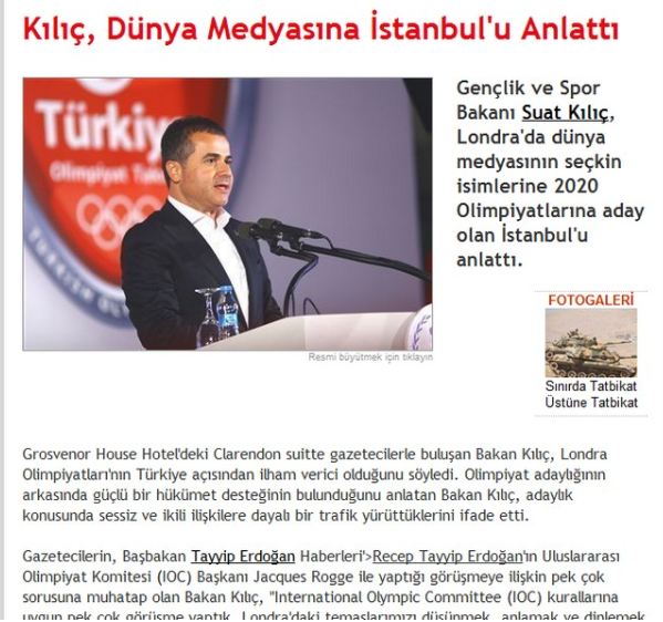 Απίστευτο θέμα με την Ολυμπιακή Φλόγα θέτουν οι Τούρκοι μέσω επίσημης τοποθέτησης από τον Υπουργό Νεολαίας και Αθλητισμού, Σουάτ Κίλιτς.Ο τελευταίος αποκάλυψε πως ο Τούρκος πρωθυπουργός Ταγίπ Ερντογάν, σε συνάντησή του με τον πρόεδρο της Διεθνούς Ολυμπιακής Επιτροπής, Ζακ Ρογκ, ζήτησε η αφή της Ολυμπιακής Φλόγας να γίνεται στην Αττάλεια! Υπογράμμισε μάλιστα με προκλητικό τρόπο πως η… ρίζα της Ολυμπιακής Φλόγας είναι στην Τουρκία, με τους γείτονες μας να την… θέλουν πίσω στη χώρα τους!!!Ο Σουάτ Κίλιτς, μίλησε στους δημοσιογράφους στο Λονδίνο, και αναφέρθηκε στην συγκεκριμένη συνάντηση των δυο ανδρών, η οποία έγινε και στο πλαίσιο της διεκδίκησης των Ολυμπιακών Αγώνων του 2020 από την Κωνσταντινούπολη.«Ο πρωθυπουργός εξήγησε στον Ζαγκ Ρογκ ότι η Τουρκία είναι η ρίζα της Ολυμπιακής Φλόγας και θέλουμε πίσω στη χώρα μας. Ανέφερε επίσης, ότι ο ίδιος ο Ζακ Ρογκ και τα μέλη της ΔΟΕ έχουν δικαίωμα να φέρουν πίσω την Ολυμπιακή Φλόγα στις ρίζες της. Η Ανατολία περιμένει τη Φλόγα της», ήταν οι δηλώσεις του Υπουργού, ο οποίος ανέφερε ακόμα πως ο Ταγίπ Ερντογάν μίλησε στον Ζακ Ρονγκ για τα έργα που γίνονται στην Πόλη (είπε πως οι Τούρκοι μπορούν να κάνουν την καλύτερη διοργάνωση που θα έχει γίνει ποτέ).Αυτό που έχει σημασία, είναι πως ο Υπουργός αποκάλυψε ότι ο Ταγίπ Ερντογάν εξέφρασε στον πρόεδρο της ΔΟΕ τη λαχτάρα των γειτόνων μας, τόσο να διοργανώσουν Αγώνες, όσο και να τους… επιστραφεί η Φλόγα!Να αναφέρουμε ότι αντιπροσωπεία της Τουρκίας βρίσκεται στο Λονδίνο, καθώς όπως είπαμε (μαζί με τη Μαδρίτη και το Τόκιο) η Κωνσταντινούπολη διεκδικεί τους Ολυμπιακούς Αγώνες του 2020.Σίγουρα αυτές οι δηλώσεις προκαλούν τουλάχιστον απορία… Με την Τουρκία να υποστηρίζει ότι η Ολυμπιακή Φλόγα, το σύμβολο των Ολυμπιακών Αγώνων, της ανήκει, και θα πρέπει να της επιστραφεί!Το θέμα φιλοξενεί και ο τουρκικός Τύπος, και στα ρεπορτάζ τους οι γείτονες επισημαίνουν πως η αντιπροσωπεία τους, για να στηρίξει το συγκεκριμένο αίτημά της, υποστηρίζει ότι σε κοντινή απόσταση από την Αττάλεια, υπάρχει ένα βουνό με το όνομα Όλυμπος, στην περιοχή της αρχαίας Λυκίας. Αναφέρουν πως το έδαφος στην συγκεκριμένη περιοχή πυρακτώνεται με φυσικούς τρόπους, λόγω ύπαρξης μεθανίου στο υπέδαφος και τονίζουν ότι σύμφωνα με τοπικό μύθο αυτή η περιοχή είναι η αρχική «πηγή» της Ολυμπιακής Φλόγας!Όπως είναι, όμως, γνωστό η Ολυμπιακή Φλόγα είναι αναπαράσταση της κλοπής φωτιάς του Δία από τον Προμηθέα και οι «ρίζες» της βρίσκονται στην αρχαία Ελλάδα! Τότε, που μια φωτιά δεν έσβηνε ποτέ, κατά την διάρκεια των Ολυμπιακών Αγώνων.Μήπως γι’ αυτόν τον λόγο και στην τελετή έναρξης των Ολυμπιακών Αγώνων του Λονδίνου, ενώ τονίστηκε από τους διοργανωτές πως η Ολυμπιακή Φλόγα έκανε ταξίδι πολλών χιλιομέτρων για να φτάσει στην πρωτεύουσα της Αγγλίας, δεν αναφέρθηκε από πού ξεκίνησε τα ταξίδι της; Δηλαδή από την Αρχαία Ολυμπία, όπου και έγινε η αφή. Λέτε γι’ αυτόν τον λόγο να την… έσβησαν και οι Βρετανοί, όταν χρειάστηκε να μεταφέρουν τον Ολυμπιακό βωμό; Δείτε και το τουρκικό δημοσίευμα, που αναφέρεται στο θέμα από την ιστοσελίδα, haberler.com