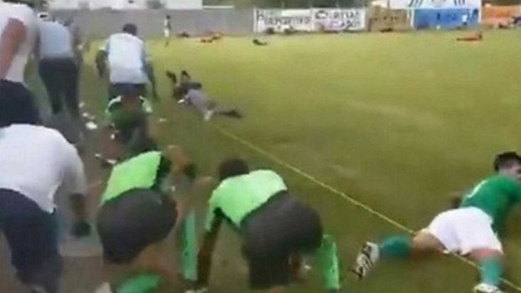 Ασύλληπτες εικόνες κατέγραψε ο τηλεοπτικός φακός σε ποδοσφαιρικό αγώνα ερασιτεχνικών ομάδων στο Μεξικό που «βάφτηκε» με αίμα.