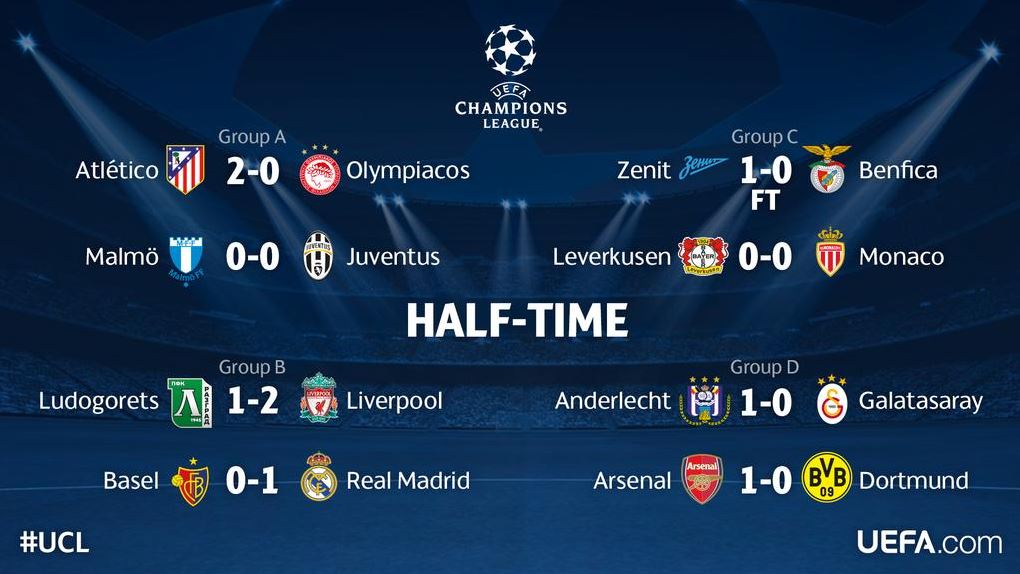 Τσάμπιονς Λιγκ: Τα αποτελέσματα ημιχρόνου