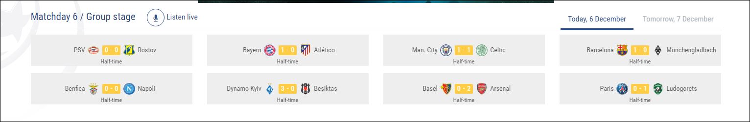 Τσάμπιονς Λιγκ: Τα αποτελέσματα του ημιχρόνου