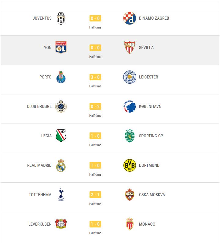 Τσάμπιονς Λιγκ: Τα αποτελέσματα του ημιχρόνου