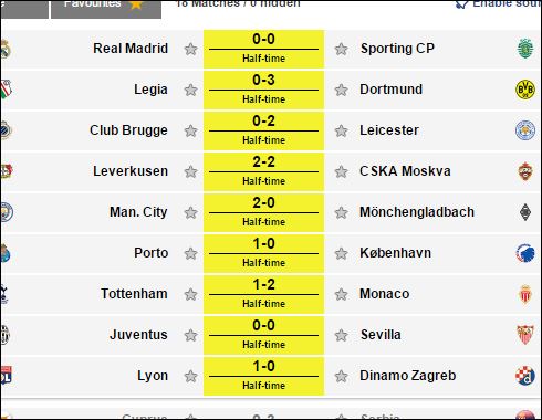 Ισόπαλο χωρίς τέρματα έληξε το πρώτο ημίχρονο της αναμέτρησης ανάμεσα στη Γιουβέντους και την Σεβίλλη για την πρεμιέρα του Τσάμπιονς Λιγκ. Δείτε τα αποτελέσματα του ημιχρόνου και στα οκτώ παιχνίδια: