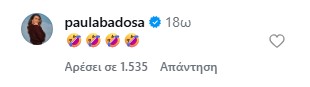 Η τοποθέτησή του δεν πέρασε απαρατήρητη από την πρώην σύντροφό του, την Ισπανίδα τενίστρια Πάουλα Μπαντόσα που σχολίασε κάτω από το βίντεο με emoji με γέλια.