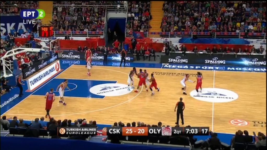 Ο Ολυμπιακός ανέβασε την απόδοσή του στην επίθεση στο τρίτο δεκάλεπτο, όπου πέτυχε 28 πόντους, με συνέπεια να βρίσκεται στο -5 από την ΤΣΣΚΑ Μόσχας. Πρώτοι σκόρερ της ελληνικής ομάδας οι Πρίντεζης και Χάντερ με 15 πόντους.