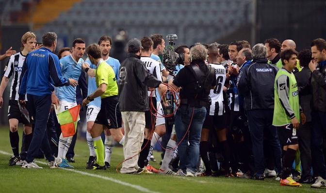 Σκηνές που έχουμε δει πολλές φορές στα ελληνικά γήπεδα εκτυλίχθηκαν κατά τη διάρκεια του αγώνα ανάμεσα στην Ουντινέζε και την Λάτσιο για το καμπιονάτο.Μετά το δεύτερο γκολ των γηπεδούχων, οι παίκτες των φιλοξενούμενων την…έπεσαν στο διαιτητή και στην συνέχεια ακολούθησε σύρραξη μεταξύ των ποδοσφαιριστών, των προπονητών και των παραγόντων των δύο ομάδων.