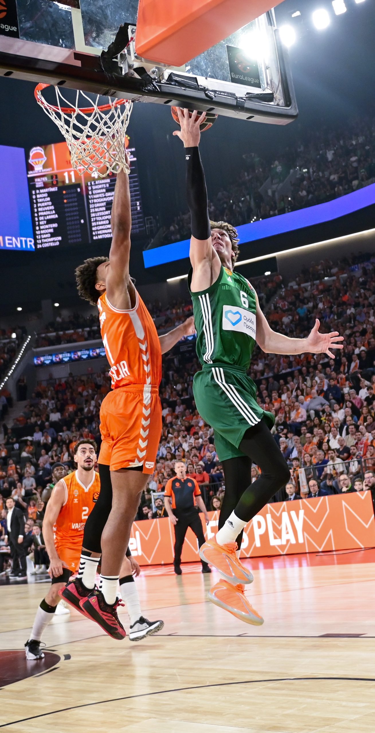 Ο Παναθηναϊκός από το τρίτο δεκάλεπτο έκανε το 80-71 τρέχοντας σερί 15-0, μέχρι ο Ντε Λαρέα να μειώσει σε 80-74. Ο Ισπανός γκαρντ συνέχισε για το 80-77 με νέο τρίποντο, αλλά ο Γκραντ απάντησε με δικό τρίποντο για το 83-77 στα πρώτα τρία λεπτά της 4ης περιόδου. Το παιχνίδι είχε τρομερή ισορροπία, με τις βολές και τα λάθη να είναι στους ίδιους αριθμούς (15-15 βολές, 9-9 λάθη). Το σύνολο του Έργκιν Άταμαν βρήκε πολλές λύσεις για να σκοράρει, από τους Ναν, Σορτς και Όσμαν, όπου έφτασε στο +6 για το 90-84. Η Βαλένθια έκανε την τελική της αντεπίθεση στα τελευταία πέντε λεπτά, φέρνοντας το ματς στο 92-92, δυο λεπτά πριν την λήξη της αναμέτρησης, καθώς ο Παναθηναϊκός κόλλησε την επίθεση του. Ο Παναθηναϊκός είχε την ευκαιρία να κλείσει το ματς στο 95-95, μετά από άστοχο σουτ της Βαλένθια, οι “πράσινοι” πήραν το ριμπάουντ, αλλά το σουτ του Ναν βρήκε σίδερο και έτσι το ματς πήγε στην παράταση.