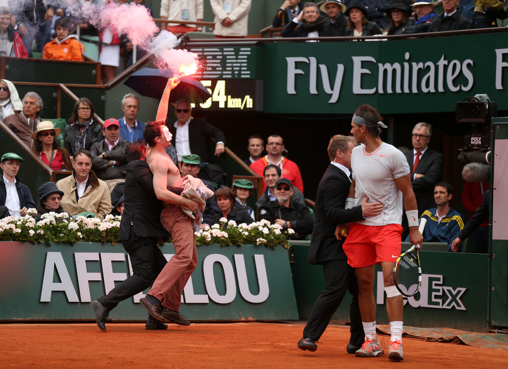 Στον μεγάλο τελικό του Ρολάν Γκαρός, ανάμεσα σε Ναδάλ και Φερέρ, ένας ημίγυμνος άνδρας με μάσκα στο πρόσωπο κατάφερε να διακόψει προσωρινά το παιχνίδι.