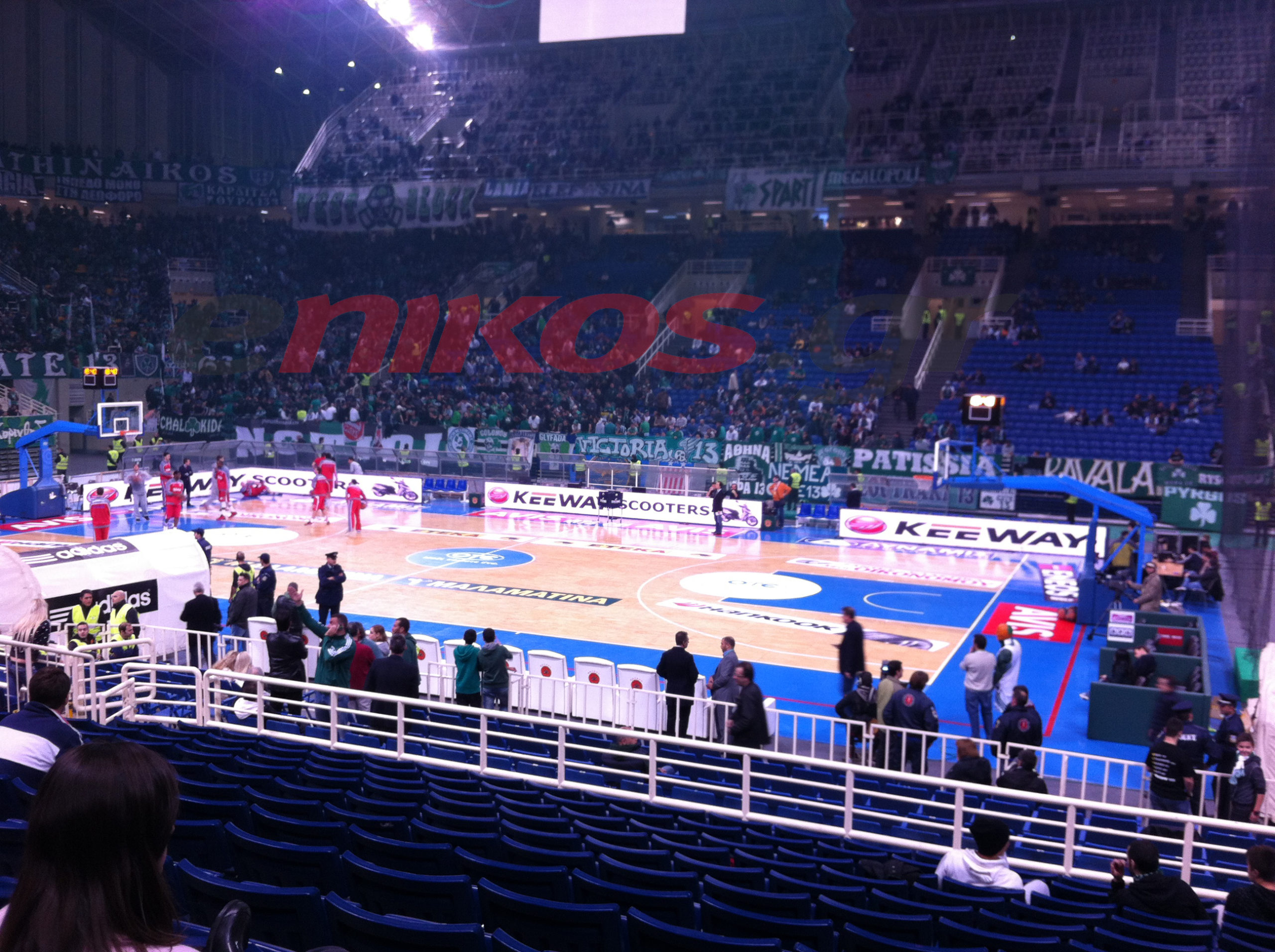 Παναθηναϊκός και Ολυμπιακός διασταυρώνουν τα ξίφη τους σε λίγη ώρα (19.30) στο ΟΑΚΑ στον ημιτελικό του κυπέλλου Ελλάδας στο μπάσκετ. Αναγνώστης του enikos.gr μας έστειλε αυτή τη φωτογραφία από το ΟΑΚΑ.