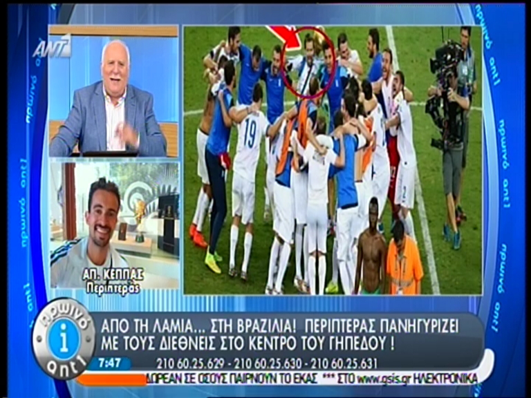 Ένα υπάλληλος περιπτέρου από τη Λαμία εισέβαλε στο γήπεδο και πανηγύρισε μαζί με τους ποδοσφαιριστές για την πρόκριση της Εθνικής στους “16” του Μουντιάλ.