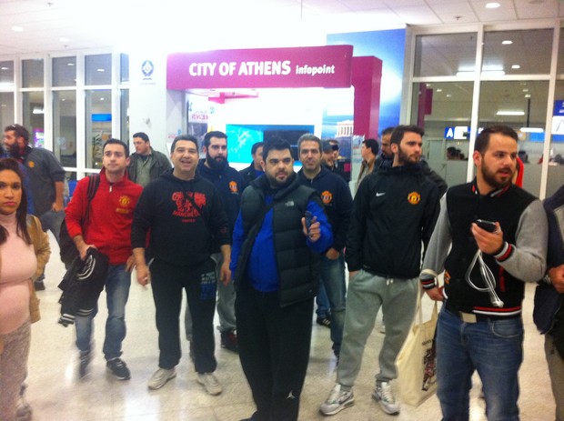 Στο αεροδρόμιο «Ελ. Βενιζέλος» βρέθηκαν περίπου πενήντα οπαδοί, μέλη του ελληνικού συνδέσμου φίλων του αγγλικού συλλόγου, προκειμένου να αποθεώσουν τους «κόκκινους διαβόλους».