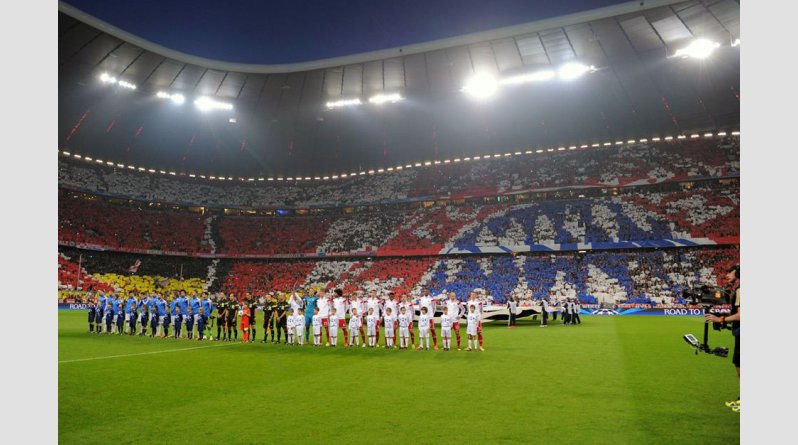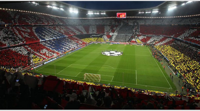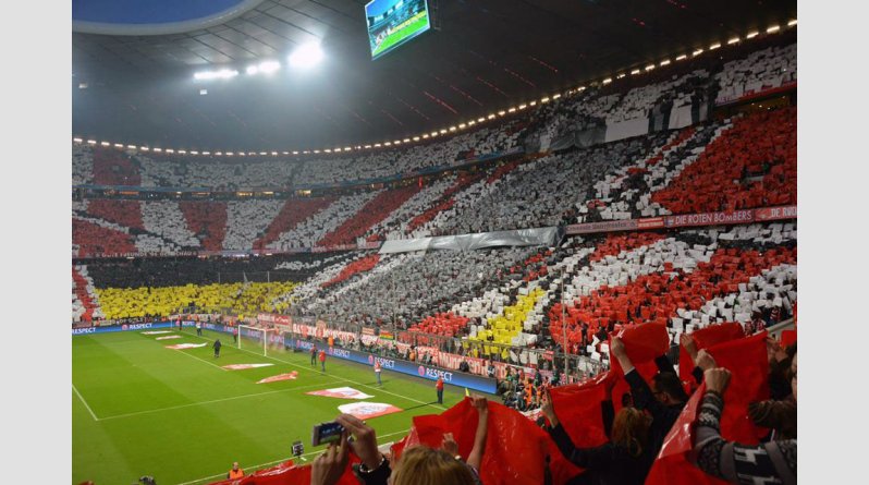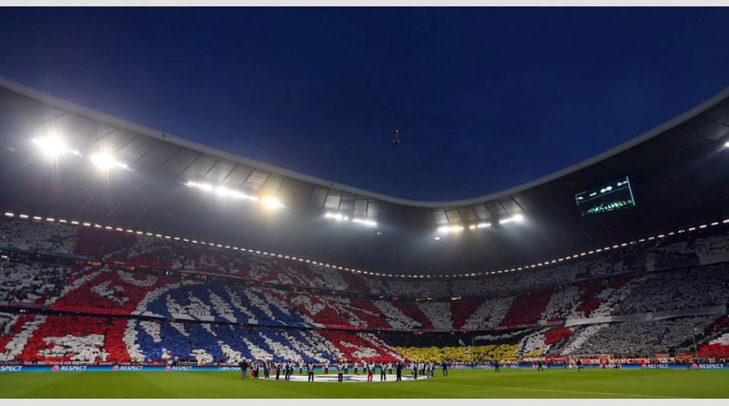 Κατάμεστο το Αλιάνζ Αρίνα, με όλους τους θεατές να συμμετέχουν στο εκπληκτικό κορεό πριν από τη σέντρα του ματς με τη Ρεάλ Μαδρίτης σχηματίζοντας το σήμα της Μπάγερν και βάφοντας το γήπεδο με τα χρώματα της.