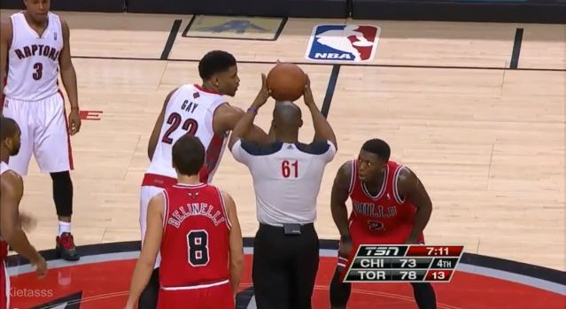 Με έναν απίστευτο τρόπο, ο Νέιτ Ρόμπινσον των Σικάγο Μπουλς, «κλέβει» την μπάλα, αλλά και την παράσταση, στο τζάμπολ με τον Ρούντι Γκέι, των Τορόντο Ράπτορς.