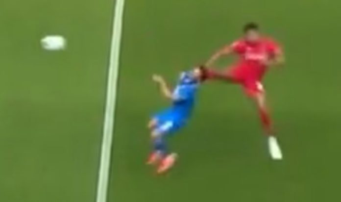 Ο Carl Johnston, που δέχθηκε το τάκλιν, παρέμεινε ξαπλωμένος στο χορτάρι, αν και τελικά κατάφερε να επιστρέψει στον αγώνα.