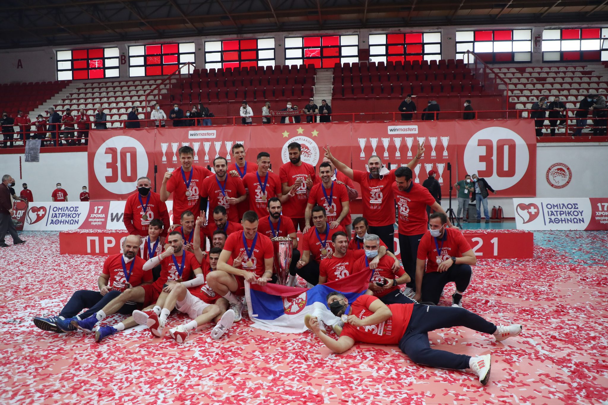 Ο Ολυμπιακός έκλεισε την αγωνιστική περίοδο του πρωταθλήματος 2020-21 με τρόπο εμφατικό, όπως αρμόζει δηλαδή σε έναν πρωταθλητή. Οι «ερυθρόλευκοι» έκαναν επίδειξη δύναμης απέναντι στον ΠΑΟΚ, τον οποίο νίκησαν εύκολα με 3-0 στο «Μελίνα Μερκούρη» παραχωρώντας μόλις 40 πόντους, στο πλαίσιο της 6ης και τελευταίας αγωνιστικής της β΄ φάσης στη Volley League.
