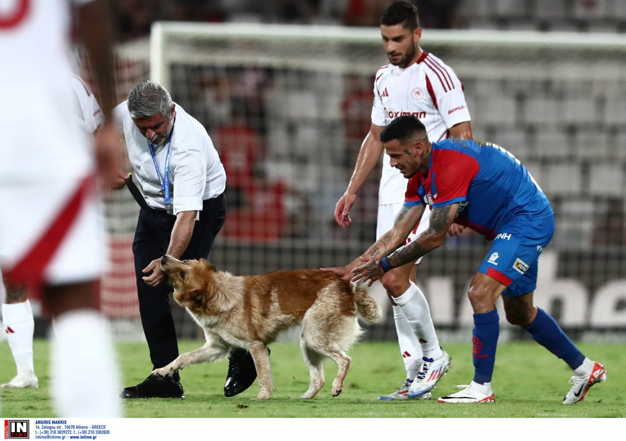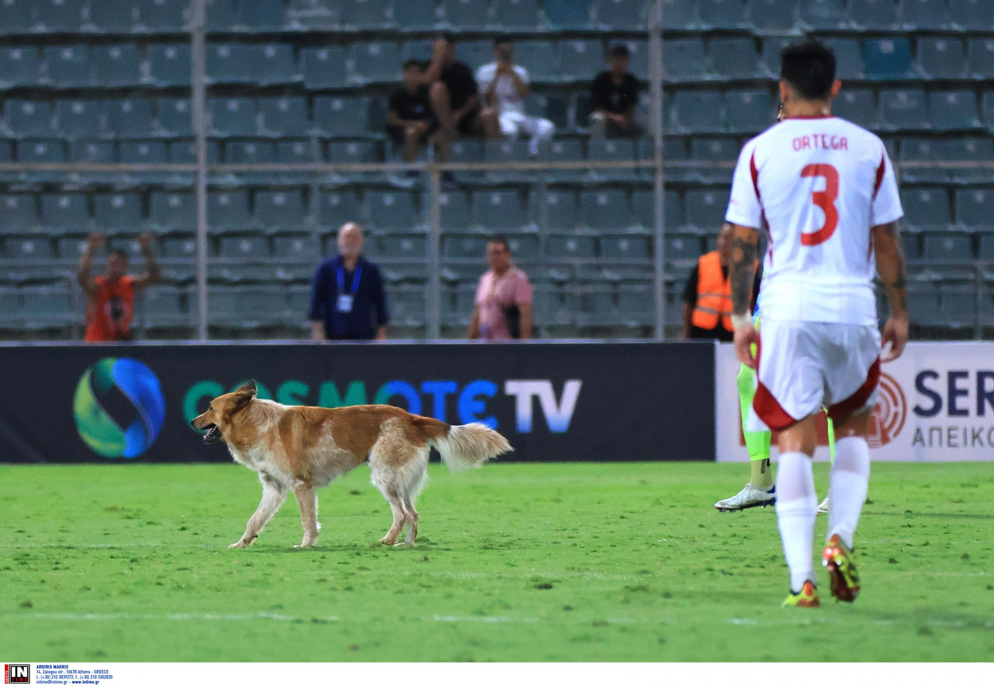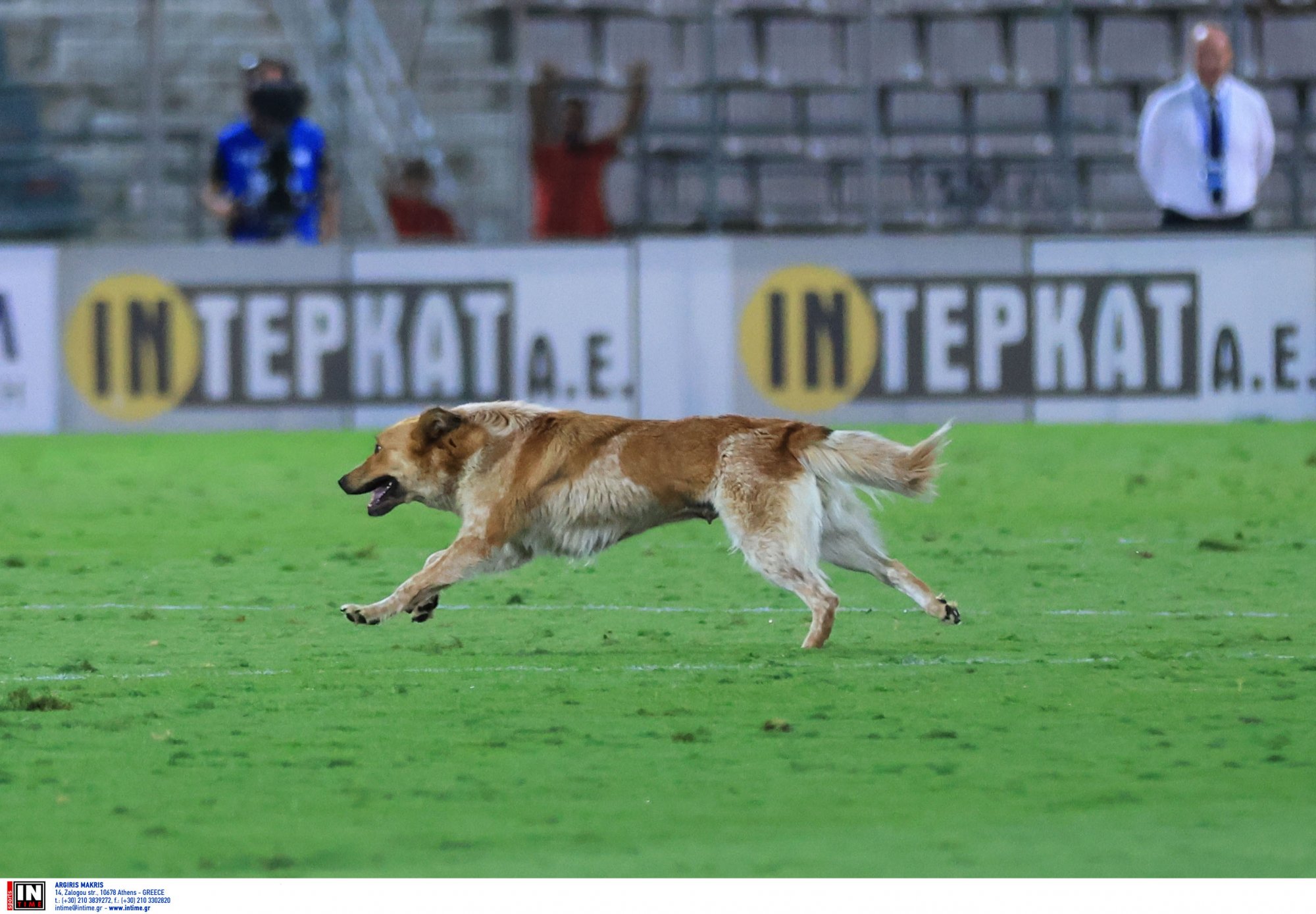 Ένας χαριτωμένος σκύλος βρέθηκε στον αγωνιστικό χώρο του Πανθεσσαλικού Σταδίου, διακόπτοντας προσωρινά τον αγώνα καθώς πλησίασε τους ποδοσφαιριστές, δείχνοντας παιχνιδιάρικη διάθεση.